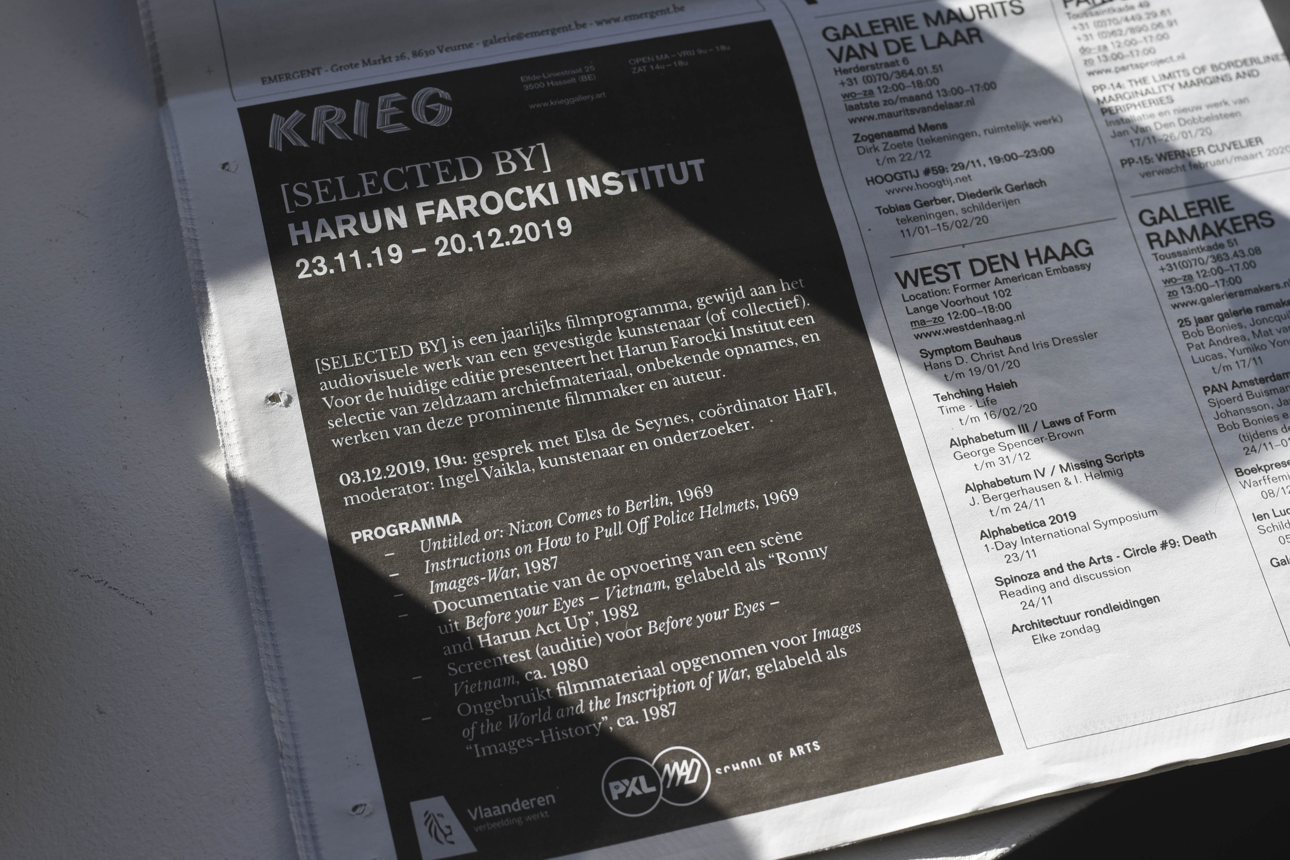 Sinds 2017 ben ik als grafisch ontwerper betrokken bij het non-profit artistieke platform KRIEG. KRIEG geeft een podium aan hedendaagse kunstenaars en heeft de reputatie nieuw talent te identificeren. KRIEG is zowel een productiebureau, tentoonstellingsruimte, distributieplatform als community resource. Kunstenaars staan daarbij altijd centraal.